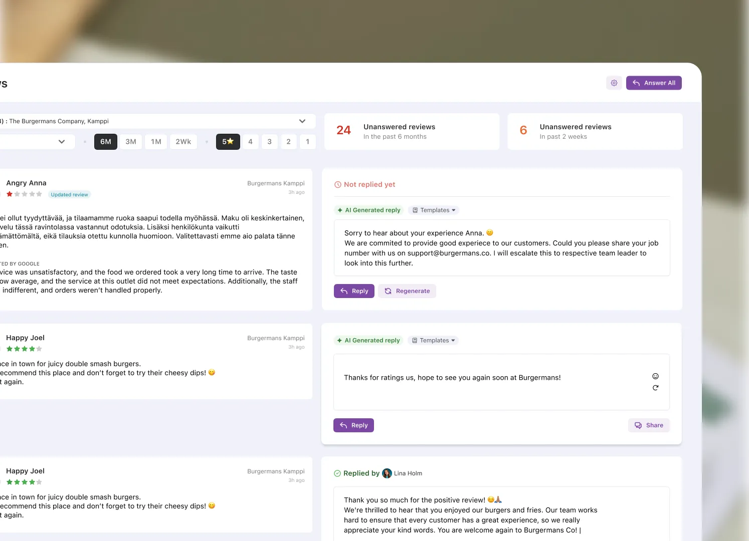 AI relies heavily on public sentiment and reviews to determine trust. Mobal helps you collect, respond to, and highlight positive feedback to strengthen your credibility.