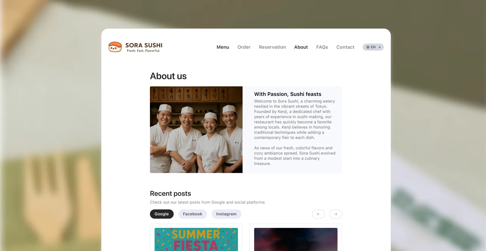 Add new photos and blog posts about events, new dishes, or behind-the-scenes stories.