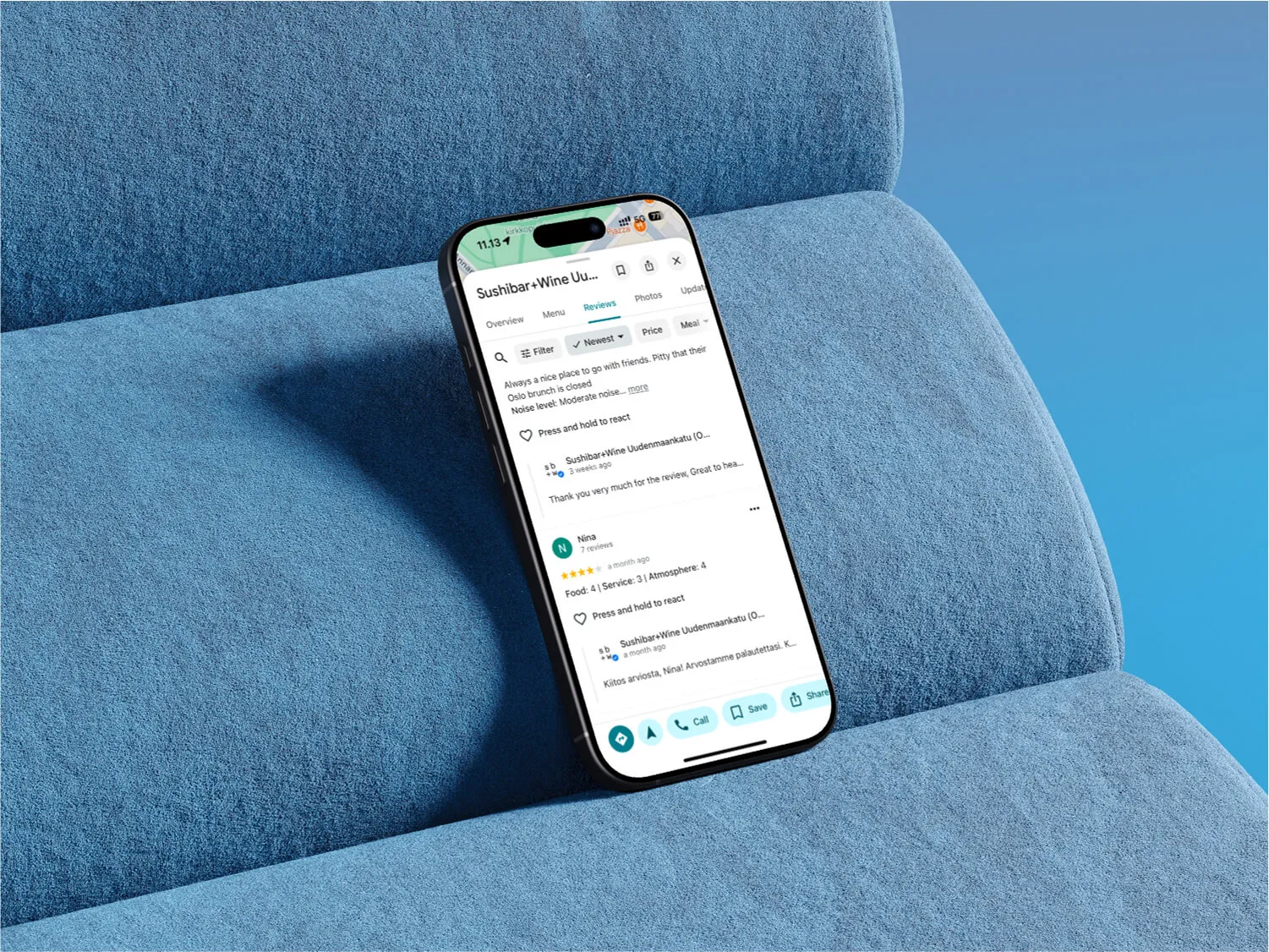 A screenshot of restaurants on Google Maps.